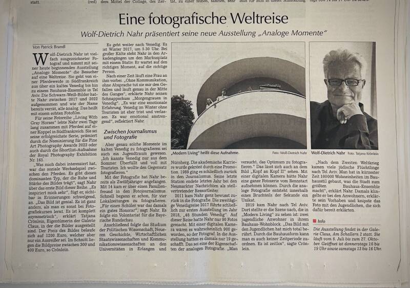 Die Ausstellung ist gut besucht worden und hat insbesondere am Abend der Galerien in Regensburg große Zustimmung erfahren. Das Interesse an Analogphotographie ist gerade in Zeiten der schnellen Bilder ungebrochen. Es kam zu schönen Begegnungen mit anderen Photographen und zu einem regen Austausch. Wolf-Dietrich Nahr arbeitet derzeit wieder an einem neuen Photobuch.